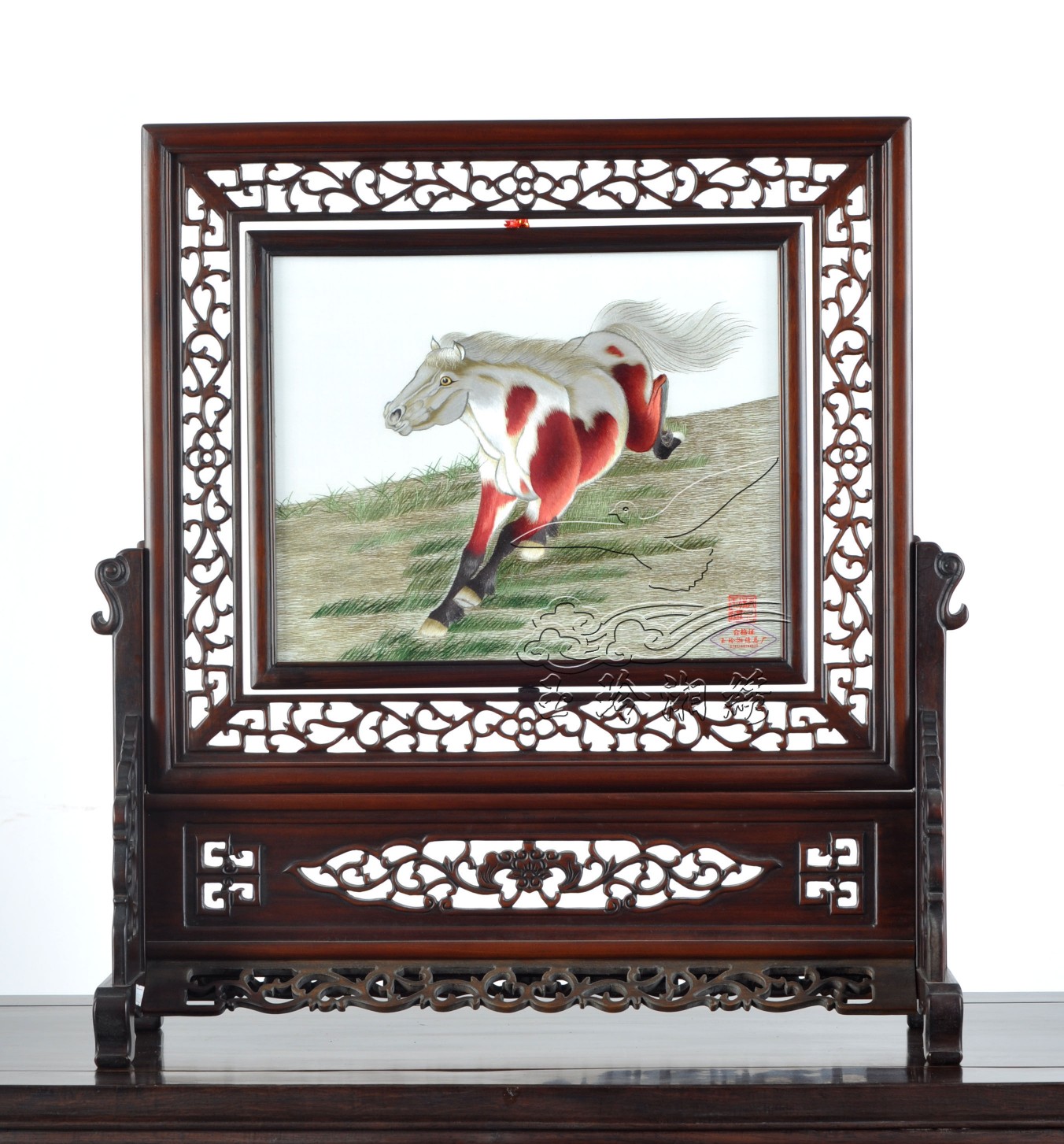 駿馬 駿馬 產(chǎn)品貨號(hào)1193 產(chǎn)品尺寸帶框:48*62(cm) 框架材質(zhì)雞翅木 產(chǎn)品類別雙面繡 咨詢電話400-0731-100 產(chǎn)品介紹 湘繡 駿馬 分享按鈕 更多雙面繡 您可能喜歡 錦鯉 國(guó)色天香 自在 群峰競(jìng)秀 川流不息 和諧美滿 一路高歌