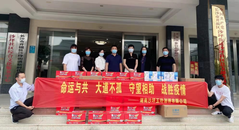 近日,玉玲湘繡董事長王玉玲攜一批慰問物資捐贈(zèng)給青竹湖街道、沙坪街道、沙坪社區(qū),本次疫情,玉玲湘繡向各界捐贈(zèng)的物資及現(xiàn)金數(shù)萬余元,主要用于慰問在抗疫一線的工作人員,感謝他們作出貢獻(xiàn)。此次捐贈(zèng)為疫情防控工作提供物資保障的同時(shí),更為街道社區(qū)戰(zhàn)“疫”工作增加了力量,鼓舞了士氣!
