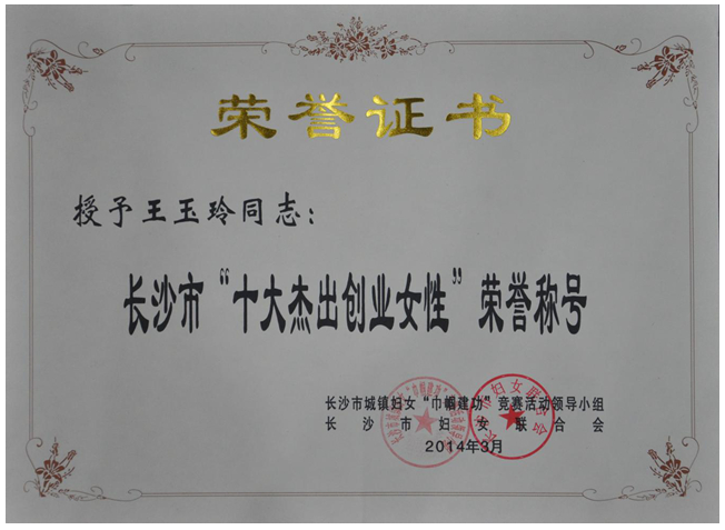 王玉玲女士,湖南沙坪玉玲湘繡有限公司董事長兼法人代表,湘繡工藝大師,1971年出生于湖南長沙市開福區(qū)沙坪鄉(xiāng),中共黨員,預備役軍官,人大代表,湖南省湘繡協會會長,長沙市民間手工女藝人協會會長。曾榮獲全國巾幗建功標兵、湖南省工藝美術行業(yè)突出貢獻獎、湖南省優(yōu)秀女企業(yè)家 、長沙市十大杰出創(chuàng)業(yè)女性、長沙市十佳巾幗創(chuàng)業(yè)明星、長沙市女大學生創(chuàng)業(yè)導師、“雙學、雙比”女能手、長沙市第一社會福利院“愛心媽媽”等榮譽稱號。其設計繡制的極品湘繡《雄風》、《肉形石》、《花開富貴》、《和諧美滿》等多件作品屢獲“百花獎”、“金鳳凰獎”等全國性工藝美術大獎。